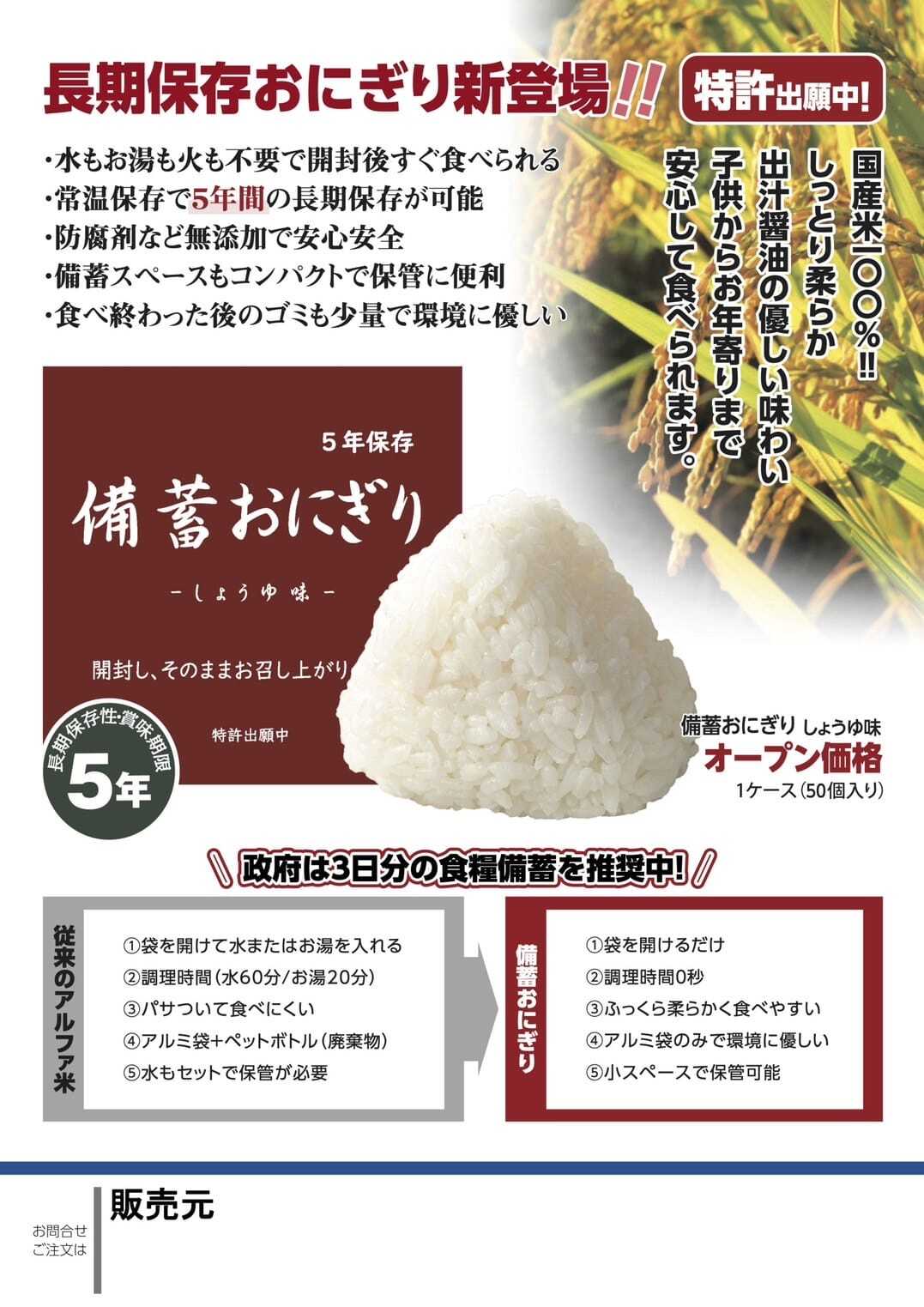 なんと5年間も保存できるおにぎりです。
